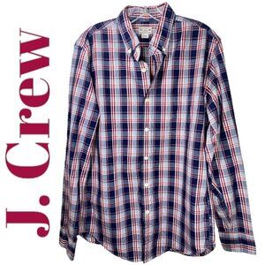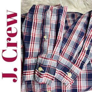 J. CREW FACTORY 100% Cotton Lightweight Summer Plaid Button Down Tailored Fit, Medium