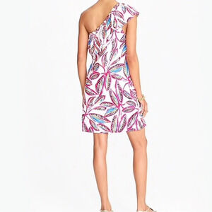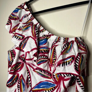 J CREW FACTORY Linen Blend Tropical Beachy One Shoulder Ruffle Flowy Mini Dress
