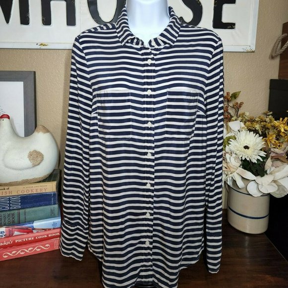 J. CREW FACTORY NAVY AND WHITE STRIPE 100% SILK BLOUSE SIZE S
