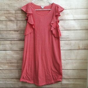 EXCELLENT CONDITION J CREW FACTORY RUFFLE TSHIRT KNIT DRESS IN RED AND WHITE STRIPES