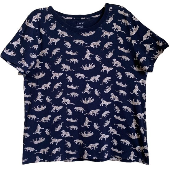 J. CREW FACTORY WOMENS' Navy Small Cheetah Print Broken-in Crewneck Tee Sz L