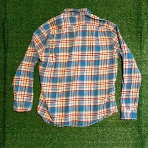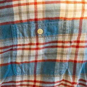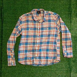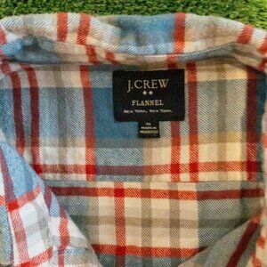 J CREW FLANNEL RED BLUE WHITE PLAID MENS CASUAL SHHIRT LONG SLEEVE SIZE XL
