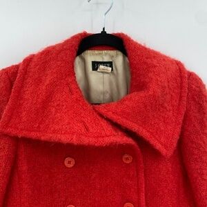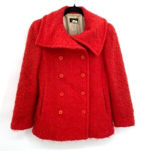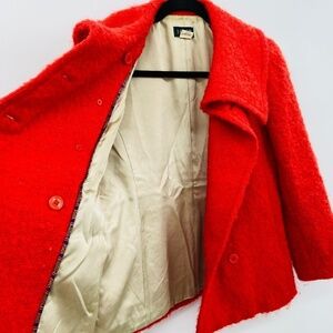 J. CREW *FLAWED* Red Tweed Mohair Wool Blend Double Breasted Blazer Jacket Sz 0