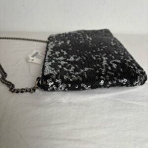 J. CREW Factory Black Silver Sequins Chain Strap Crossbody Sparkly Elegant Bag