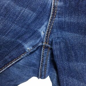 Jeans are in acceptable pre-owned condition. Super soft & stretchy. Zipper fly w/ button closure. A lot of wear. These were well loved, need some TLC to bring them back to life. Puckering & threadbare holes under zipper & between legs. Definitely a DIY project. See photos