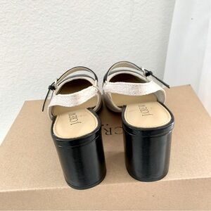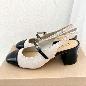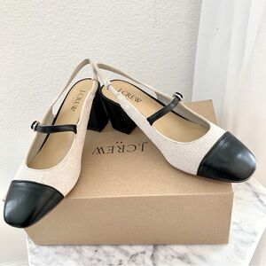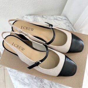 J. CREW Factory Mary Jane Slingback Heels Two Tone Black Tipped Canvas