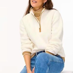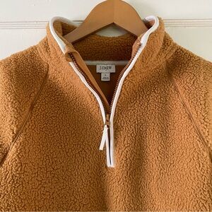 // jcrew j crew Sherpa Teddy sweatshirt sweater half zip quarter zip tan cream honey brown orange bs224 //