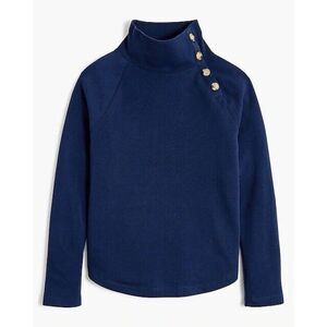 Craft your outfit with the J. CREW Factory Women’s Blue Wide Button Collar Blouse, a versatile addition to your wardrobe. The blouse features a crisp blue hue complemented by a sophisticated collared neckline and accented with eye-catching wide buttons. Its long sleeves make it ideal for transitional weather, perfect for layering or standalone wear.