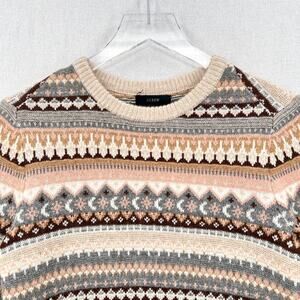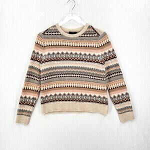 J CREW Fair Isle Cropped Crewneck Sweater Womens XS Cream Gray Brown Wool Blend
