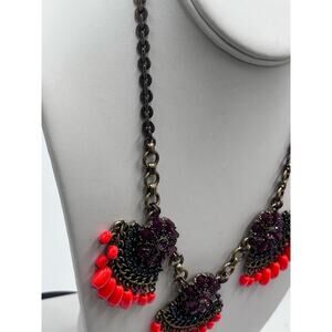 J. CREW Fan Fringe Flower Purple Orange Gold Tone Statement Bib Necklace