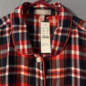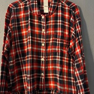 J. CREW Flannel Pajama Top Women’s Medium Red/Black Plaid Button Front Comfy NWT