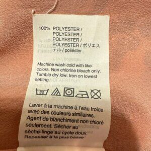 Floral, polyester crepe fabric with long sleeves, wrap style front with side tie. Lined.