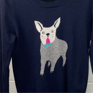 J. CREW French Bulldog Pullover Crewneck Sweater Women's Small Navy **EUC