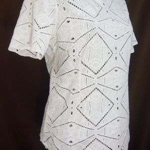 J. CREW GEOMETRIC EYELET COTTON TOP WHITE M