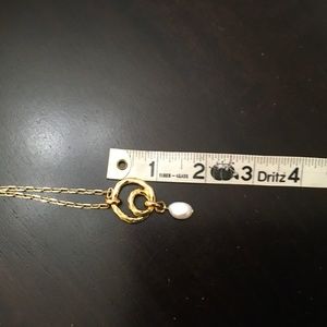 Lovely bright gold j crew necklace with a pendant of gold swirls and a freshwater style pearl. *J Crew bag included* EUC. 18 inch necklace with 2 inch extender. Pendant drop 2 inches. Smoke free home 🏠