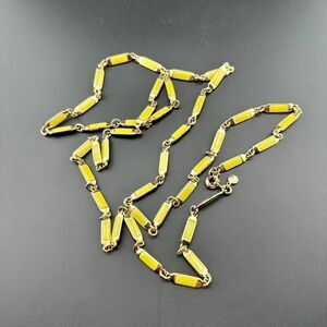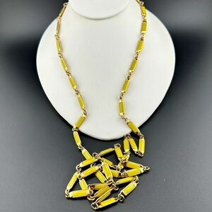 Long jcrew necklace. Gold tone with a green-yellow enamel. It is more green than yellow. Great condition! Approx 22 inches in length.