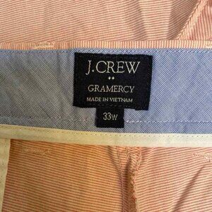 J. CREW Gramercy Shorts Mens 33 Red White Stripe 100% Cotton Flat Front Pockets