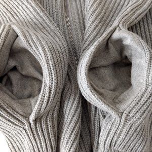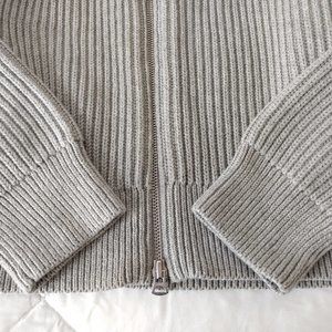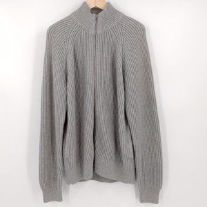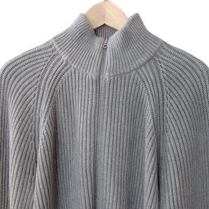 J CREW Gray Ribbed Knit Men's Long Sleeve Funnel Neck Full Zip Sweater Jacket