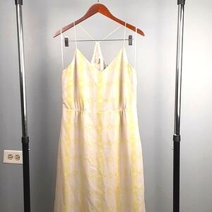 J. CREW Gray & Yellow Racerback Midi Side Slit Sheath Dress