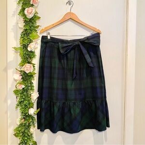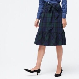J. CREW Green Tartan Plaid Bow Waist Midi Skirt size 2 Christmas holiday