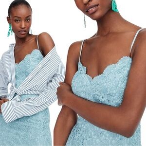 J. CREW H7373 SEAFOAM GUIPURE LACE SWEETHEART SPAGHETTI STRAP MIDI DRESS