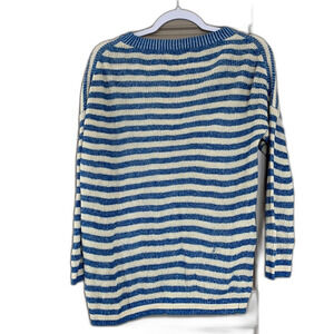 J CREW HEATHER STRIPE LINEN BLEND SWEATER BLUE SMALL