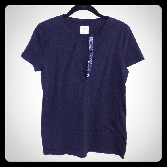 J. CREW Heirloom Cotton Tee w/ Sequin Trim in Navy