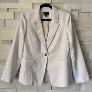 J CREW Helena One Button Blazer in Chelsea Linen-Cupro Blend Size 12 Color White