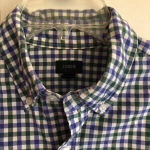 J. CREW Holiday 13 Check Cotton Button Down Shirt Blue Green Medium