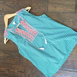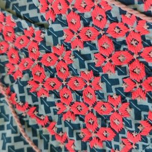 J. CREW I Blue & Pink Sleeveless Embroidered V-Neck Blouse Top with Tassels, 6