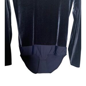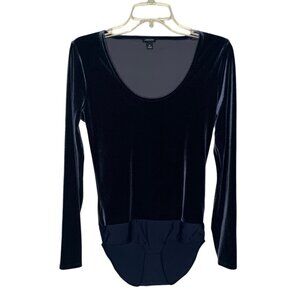 J. CREW JEANS Navy Blue Velvet Scoop Neck Fitted Long Sleeve Bodysuit Medium