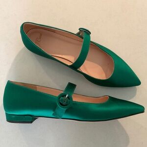 J. CREW Jade Mary Jane Satin W/ Buckle Pointed Toe Flats Size 9