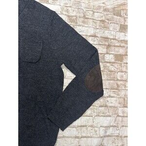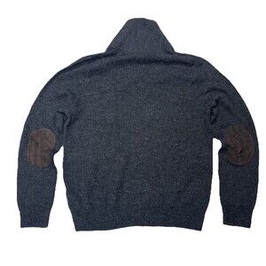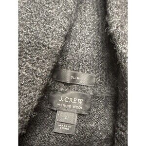 J. CREW L Sweater Jumper Merino Wool Men’s Cowl Leather Elbow Patches Gray Slim