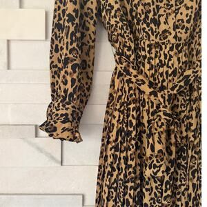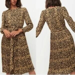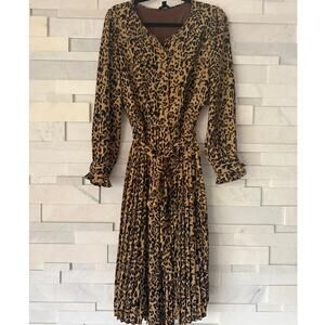 J CREW Leopard Cheetah Animal Print Button Front Tie Waist Pleated Skirt Dress10