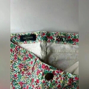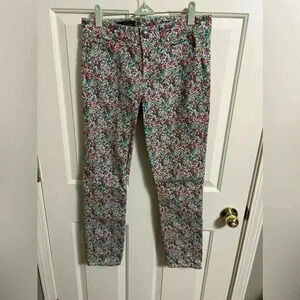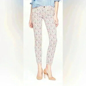 Really cute pair of J. Crew women's Liberty of London floral print skinny ankle jeans, size 26. They are 98% cotton / 2% spandex for a little stretch. In excellent pre-owned condition. These pants will look great with a white button-down shirt!