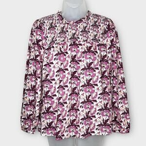 J. CREW Liberty Smocked Shirt button-back top Butterfield Poppy Size Medium