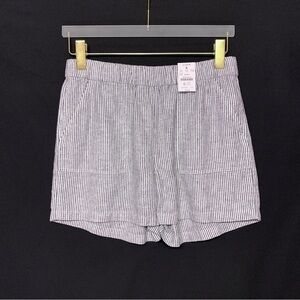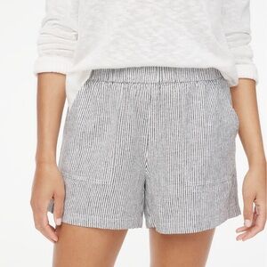 J CREW Linen Blend Pull On Striped Shorts — MEDIUM — White & Vintage Black