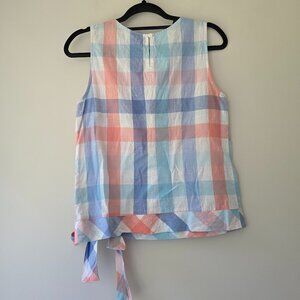 J. CREW Linen Blend Scoop Neck Tank Top | Size 4 | Tie Waist Plaid Sleeveless