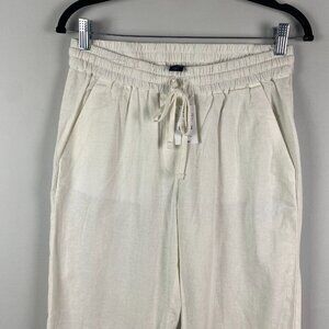 J. CREW Linen-Cotton Blend Drawstring Cropped Pants Womens 4 White Pull On