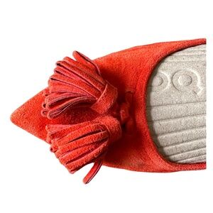 J. CREW Lottie Suede Leather Ballet Flats Sz 8 Orange Tassel Pointed Toe Slip On
