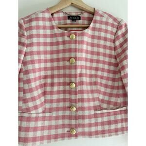 J. CREW Louisa Lady Jacket in Pink Gingham Terry Tweed Size 8
