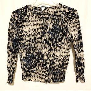 J. CREW MERINO WOOL ANIMAL PRINT BUTTON CARDIGAN S