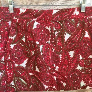J CREW MINI PENCIL SKIRT IN RED AND OLIVE GREEN PAISLEY