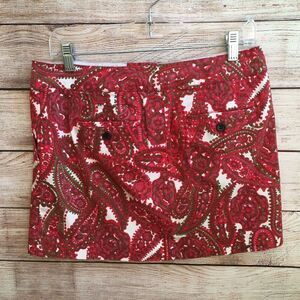 EXCELLENT CONDITION J CREW MINI PENCIL SKIRT IN RED AND OLIVE GREEN PAISLEY