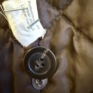 • Supple, rich chocolate Italian suede exterior with veined horn buttons