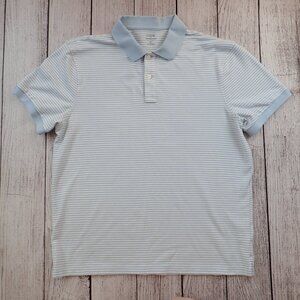J CREW Blue White Striped Short Sleeve Flex Pique Polo Shirt, Men's Large.