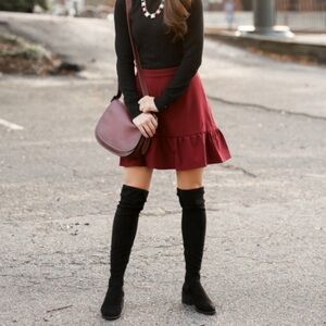 J CREW Mercantile Burgundy Flounce Ruffle A-Line Skirt Size 6