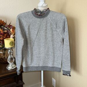 J. CREW Metallic Ruffle-Neck Sweatshirt, Size XS. Really good used condition no holes no stains. Smoke free home. 18 inch bust 23 inch length container 25.