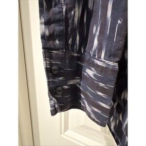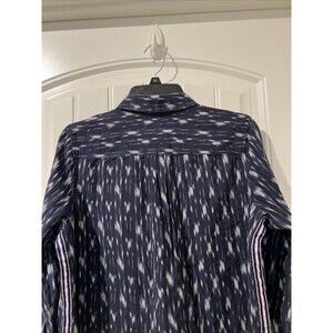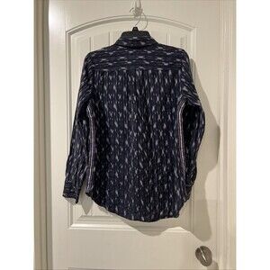 J CREW Metallic Striped Side Ikat Print Popover Shirt Blouse Navy Blue Size 8