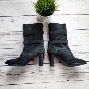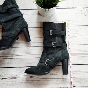 J. CREW Miller High Heel Motorcycle Suede Heeled Buckle Booties, Black, size 6